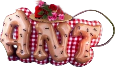Ant has an orange skin tone, with large, round eyes and a wide smiling. Two curved antennas extend from her head, and are adorned with gold accents. She wears a red and white gingham dress with ruffled layers edged with white lace, red gloves with white lace cuffs, an dark red tights with small decorative embellishments and matching heeled boots complete the outfit. She also wears a straw hat on her head, decorated with a white feather, flowers, and ribbons.