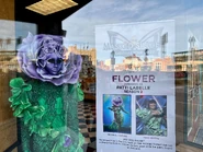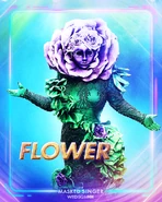 Flower is wearing a green dress that is decorated with lace that resembles vines, and ruffles that resembles leaves. The dress is also adorned with purple roses. Along with the dress, Flower wears matching gloves and pumps with green stockings. The mask resembles a purple rose with human-like facial features.